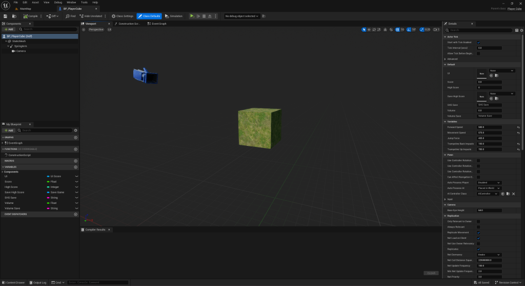 This is the blueprint of player’s pawn. Parental class is Player Cube class (which inherits Pawn class).