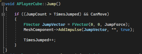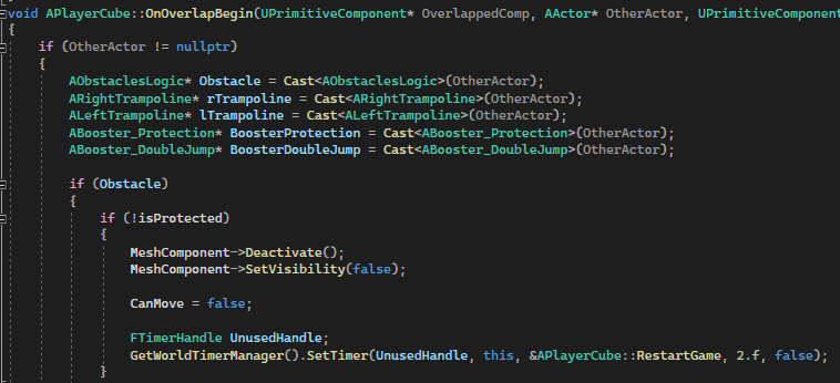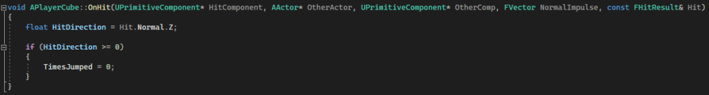 And also OnHit function of the Player’s cube, to let player jump again, after it hits the floor (Normal Z).