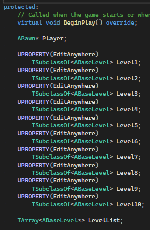 Since it’s an infinite game I decided to generate levels on a go. So, I have premade level blueprints and it randomly chooses which one to spawn from the premade ones.