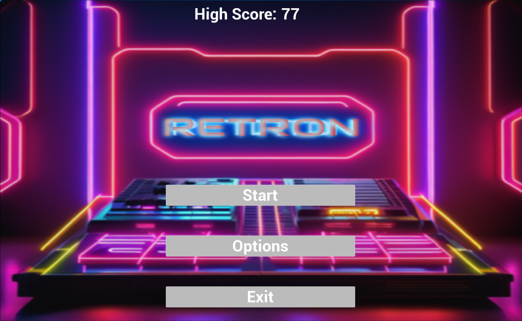 This is the main menu of the game. It uses a few save game features, for the high score and in options menu – screen resolution, volume, etc.