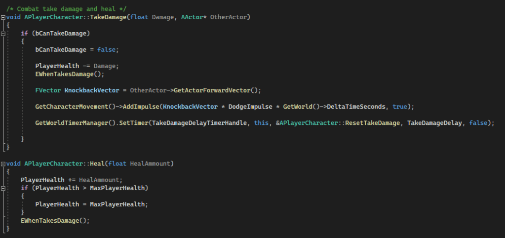 PlayerCharacter.cpp – Take Damage and Heal
