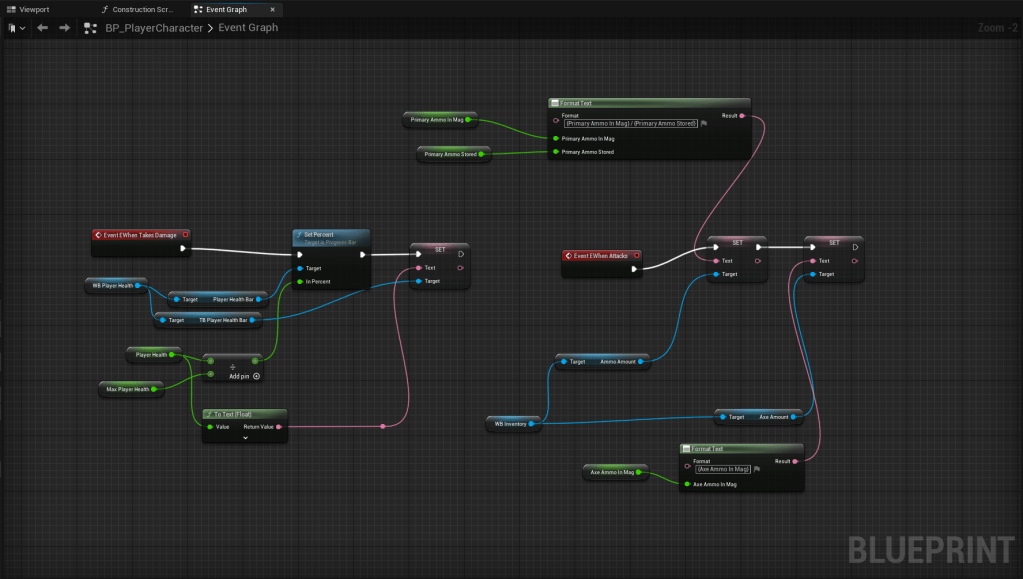 Primaraly I used Blueprint Scripting for Widgets and to save games. So here is PlayerCharacter Blueprint which creates Player’s UI: